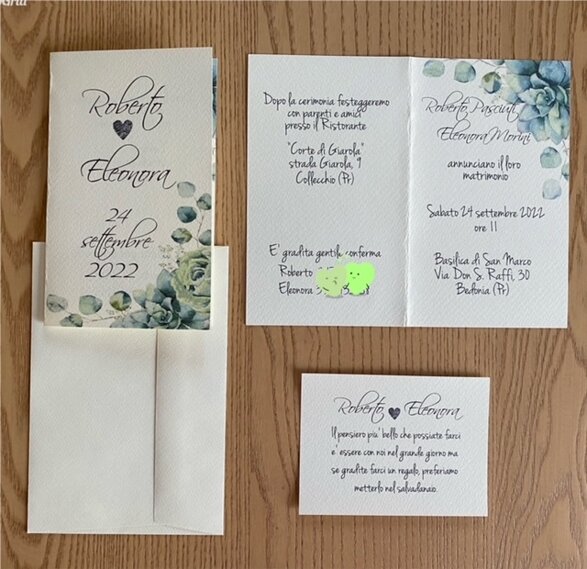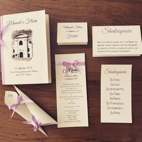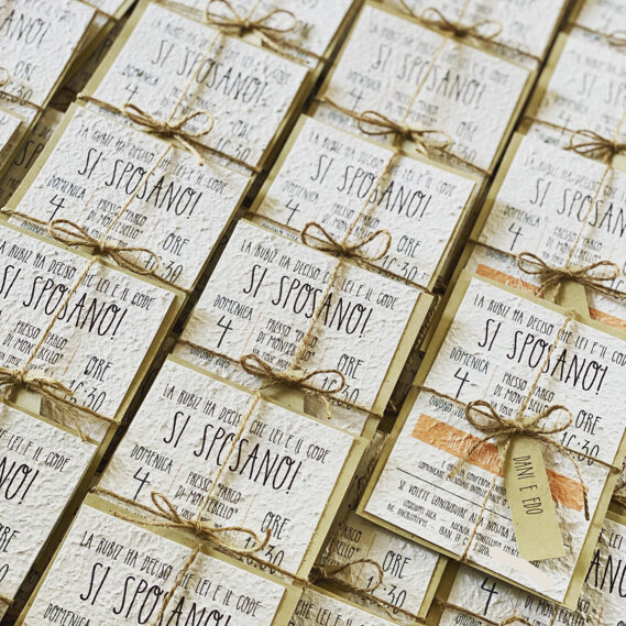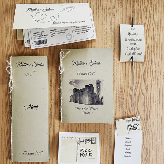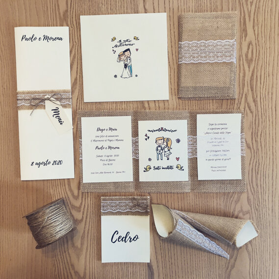 Allora scegli le nostre creazioni realizzate interamente a mano con carte naturali pregiate e grafica personalizzata, per creare con PASSIONE ed EMOZIONE la combinazione perfetta per il TUO matrimonio, come se fosse il NOSTRO!