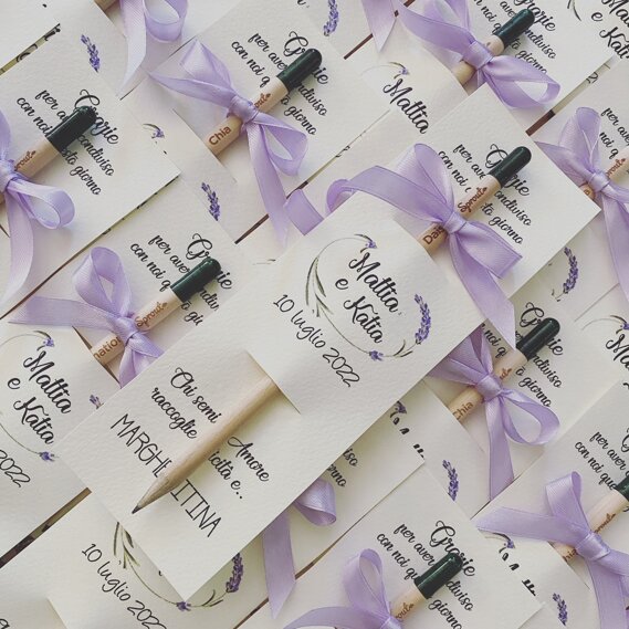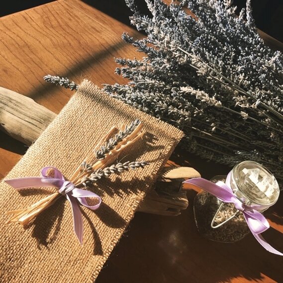 Scegli i nostri modelli della linea juta e tabacco personalizzati con lavanda biologica e grafica coordinata, e abbinali ad un segnaposto o bomboniera con prodotti a base di lavanda.
